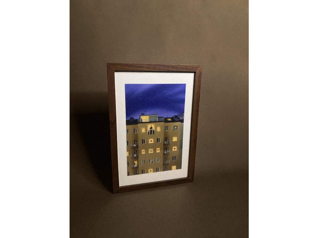 Ručně kreslená digitální ilustrace. Tisknuto na 240 g vysoce kvalitní grafický papír s matným, nelakovaným a jemně texturovaným povrchem.